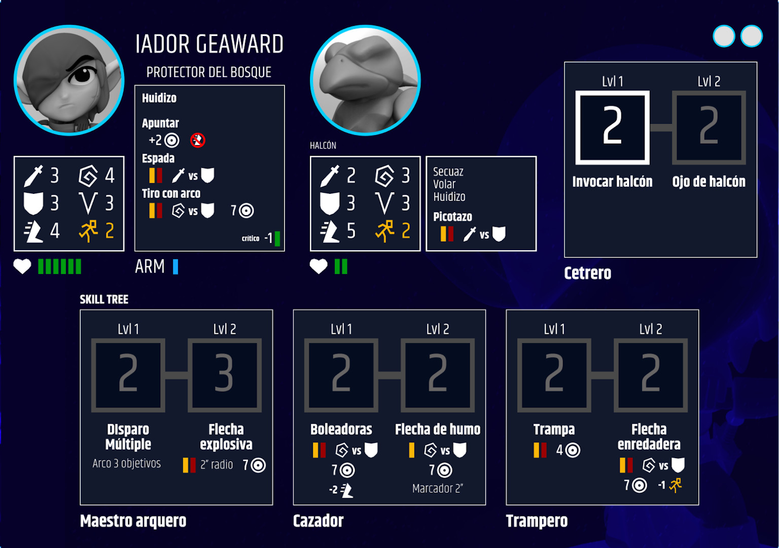 Iador comparte visión con el halcón parmitiendole realizar disparos dentro de su rango pero que obstruyan su LDV.